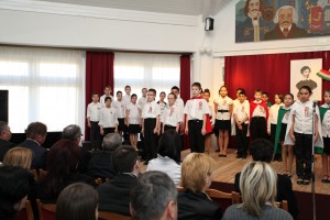 A koszorúzás után a szervezők a Dr. Földi János Általános Iskola és Alapfokú Művészetoktatási Intézmény aulájába invitálták a megjelenteket, ahol ünnepi műsor keretében emlékeztek a márciusi ifjakra. Először Vargáné Sőrés Ilona alpolgármester köszöntötte az ünneplő közönséget. Ezután a 4. évfolyamos tanulók zenés-verses produkciója következett, a gyerekeket Pécsiné Varga Erzsébet, Dobos Eszter és Enyedi Dóra készítette fel.