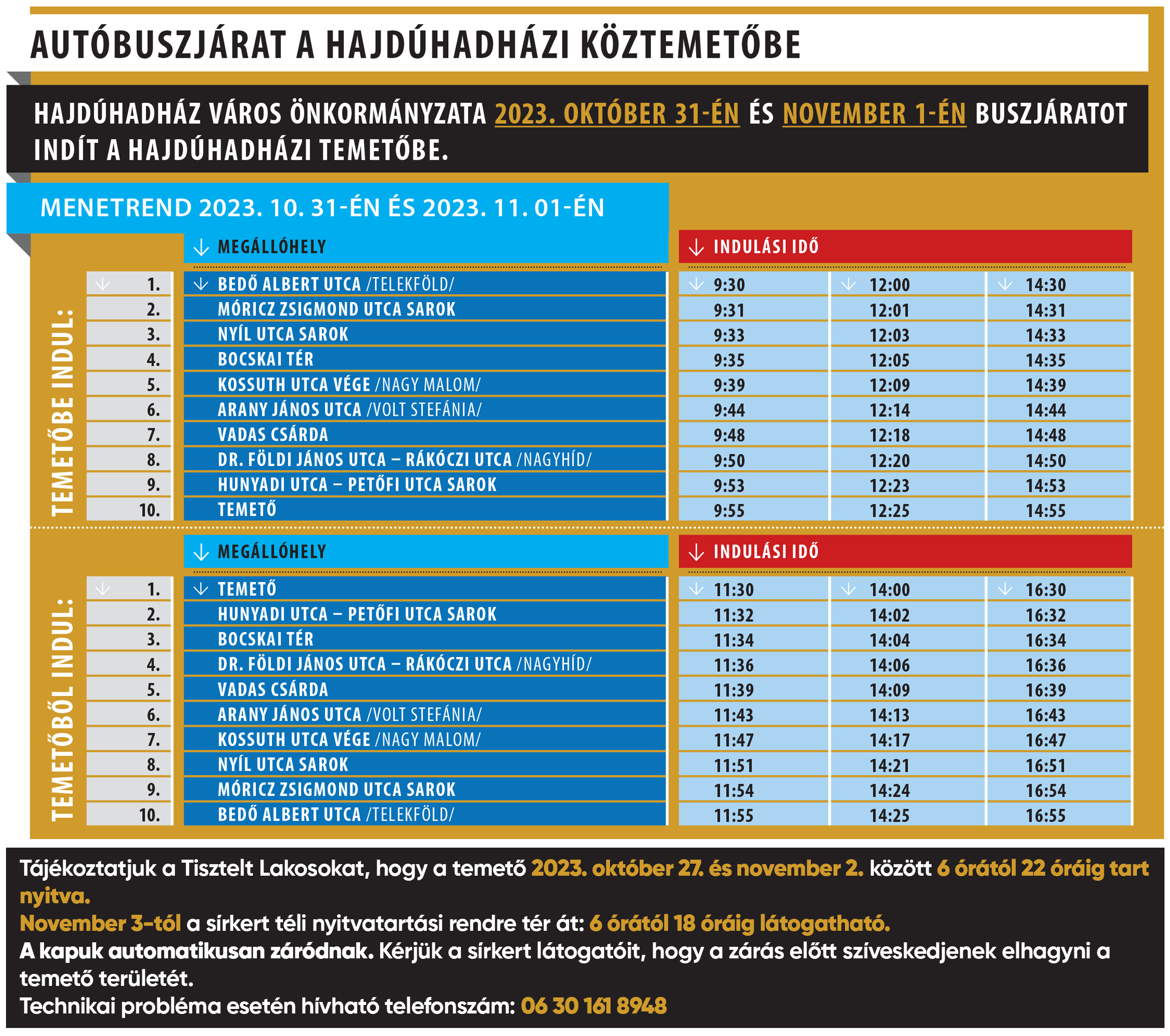 Autóbuszjárat a Hajdúhadházi Köztemetőbe