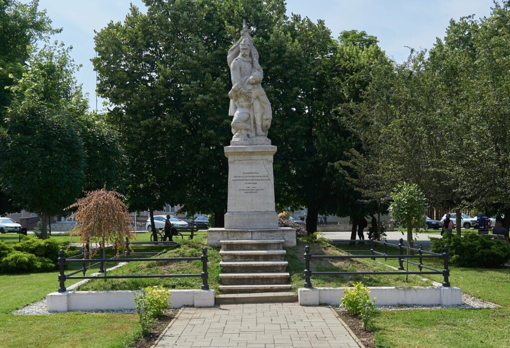 Az I. világháború Hajdúhadház 306 hősi halottja emlékére a város készíttetett gránitszobrot, melyet 1928. május 8-án lepleztek le. A legenda szerint az emlékmű azt a tragikus pillanatot ábrázolja, amikor Kiss Bálint és fia egyszerre estek el a háborúban. A szobrot 1999-ben felújították. A kőalakokat lefestették, a posztamens oldalára fekete lapokat ragasztottak, ezekre gravírozták a 306 helyi illetőségű háborús áldozat nevét.