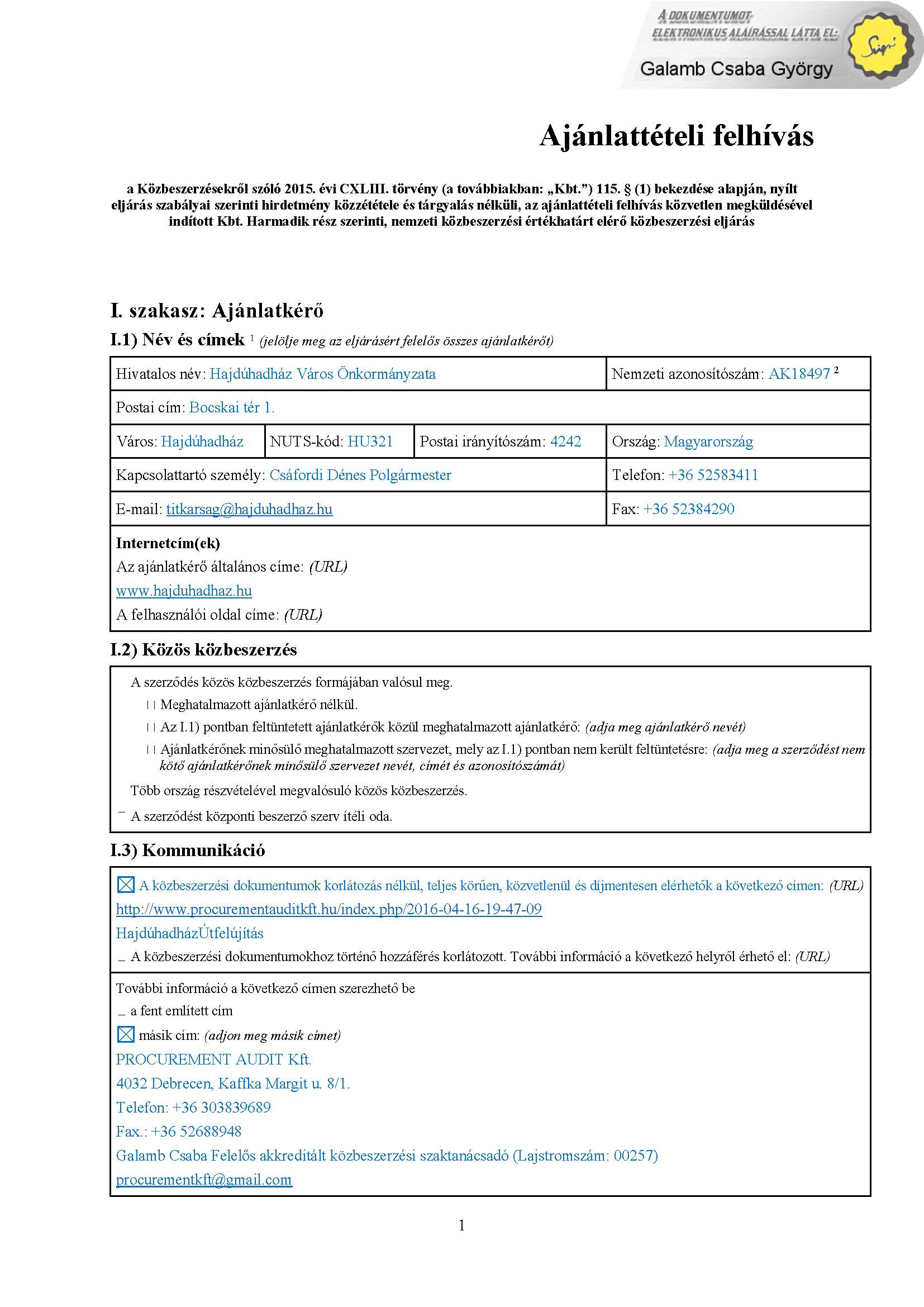 a Közbeszerzésekről szóló 2015. évi CXLIII. törvény (a továbbiakban: „Kbt.”) 115. § (1) bekezdése alapján, nyílt eljárás szabályai szerinti hirdetmény közzététele és tárgyalás nélküli, az ajánlattételi felhívás közvetlen megküldésével indított Kbt. Harmadik rész szerinti, nemzeti közbeszerzési értékhatárt elérő közbeszerzési eljárás