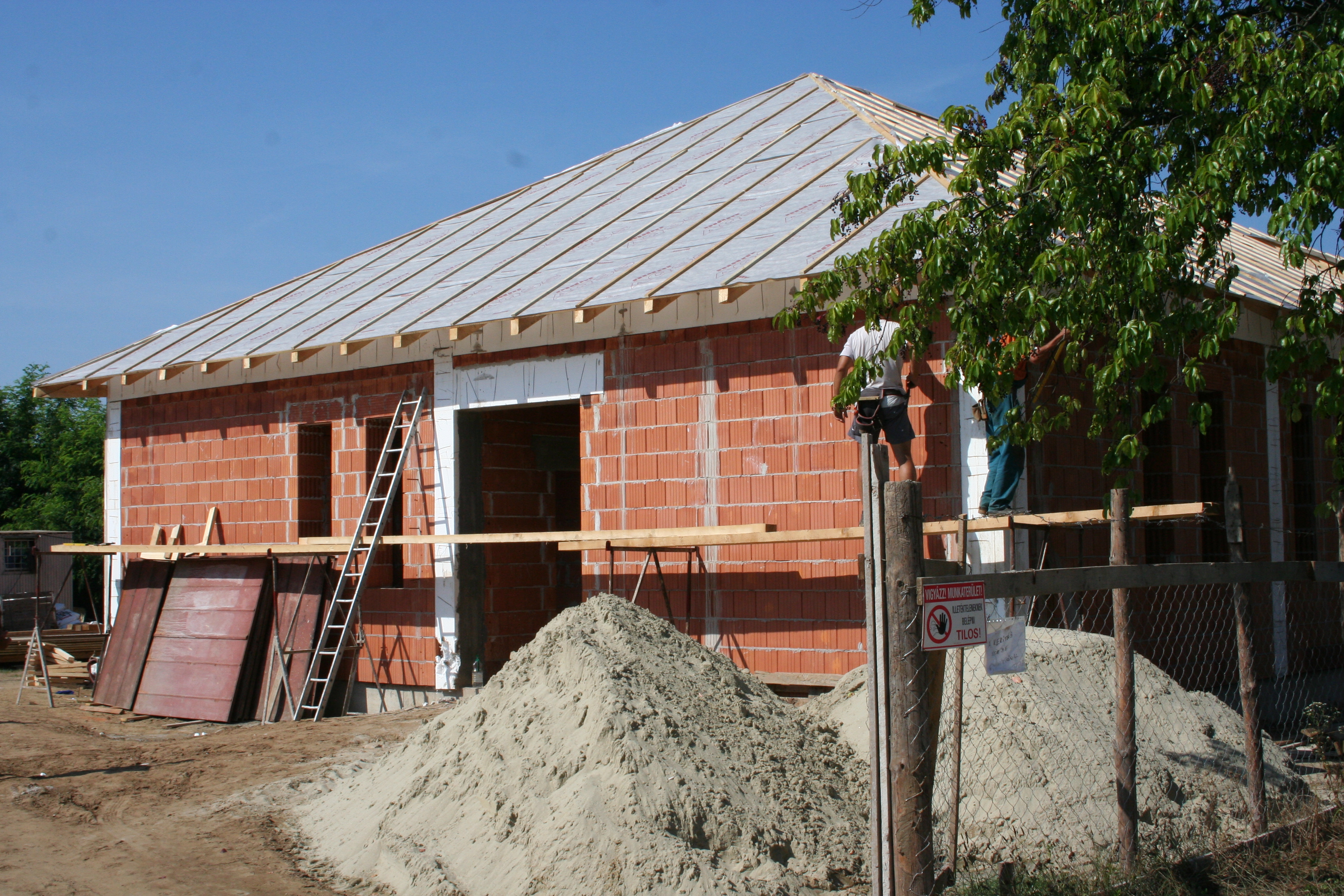 Az új bölcsőde épületére hamarosan rákerülnek a tetőcserepek. Az építkezés ragyogó ütemben halad, így januárban költözhetnek a bölcsődei csoportok az új, berendezett épületbe.