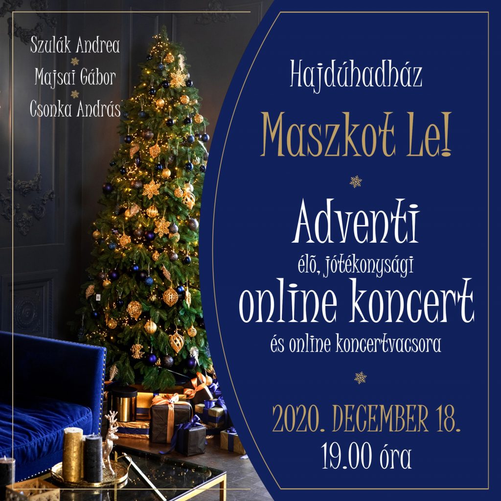 Hajdúhadház városa 2020. december 18-án (pénteken) 19:00 órai kezdettel ADVENTI ÉLŐ JÓTÉKONYSÁGI ONLINE KONCERTET ad. A zenés eseményen sztárelőadók (Szulák Andrea, Csonka András, Majsai Gábor) énekelnek majd jól ismert és új karácsonyi dalokat élőben.