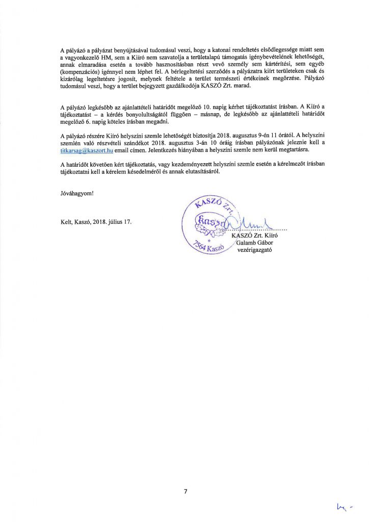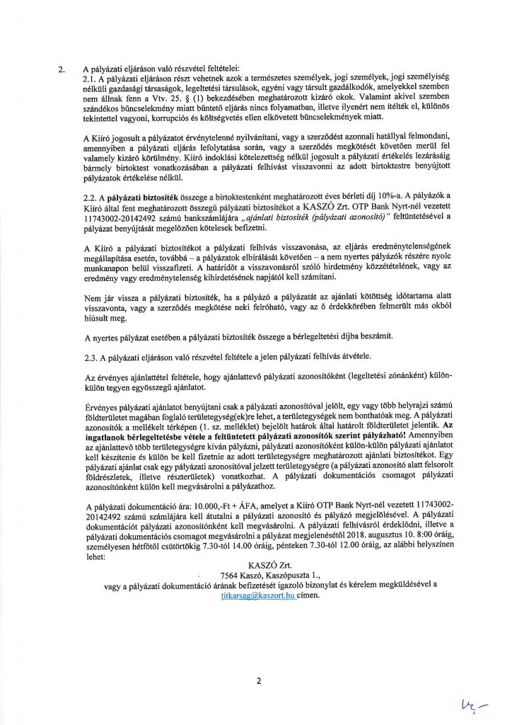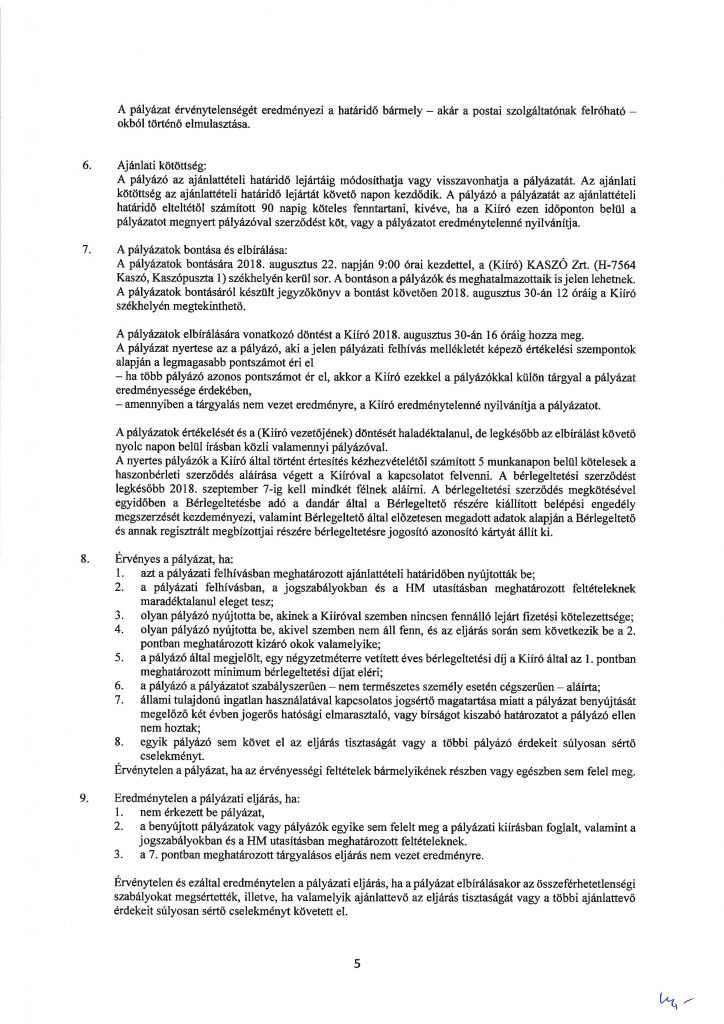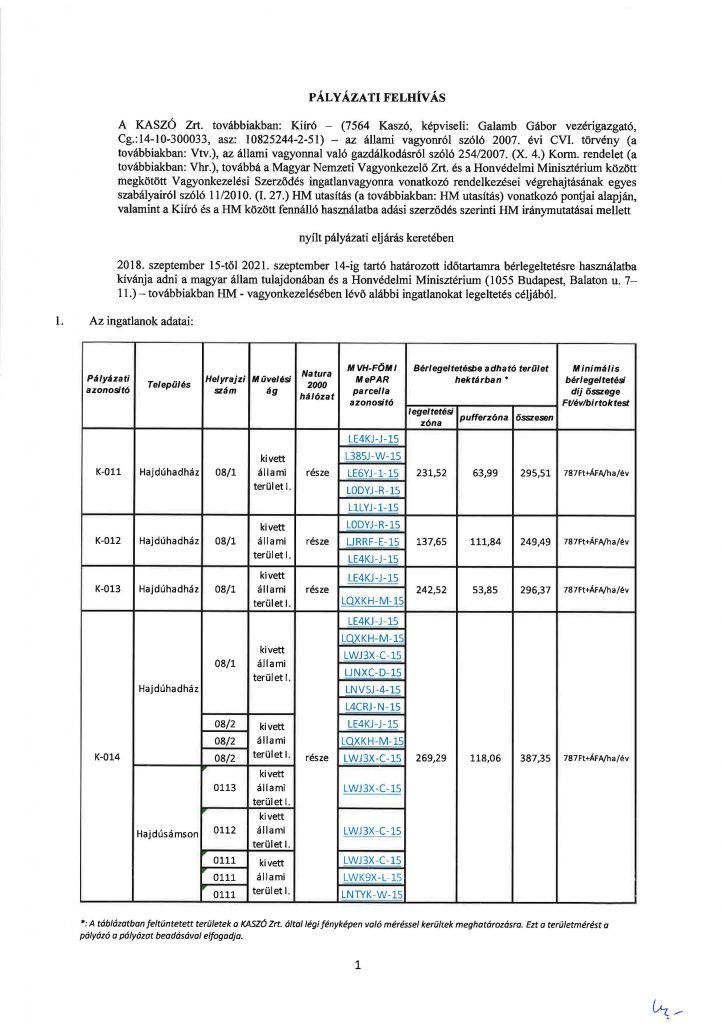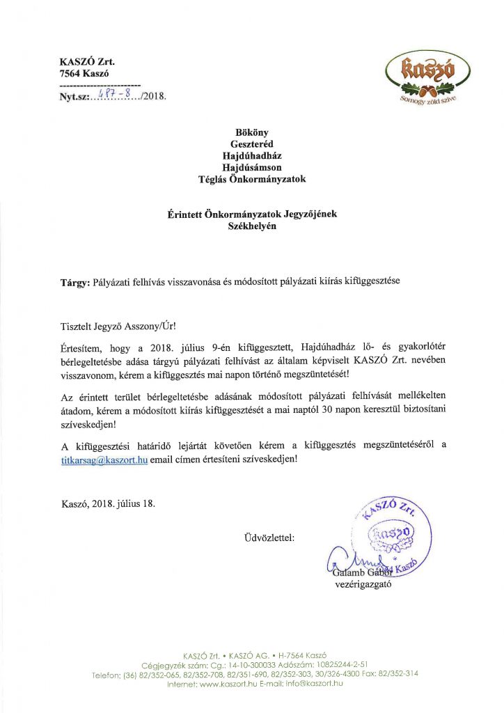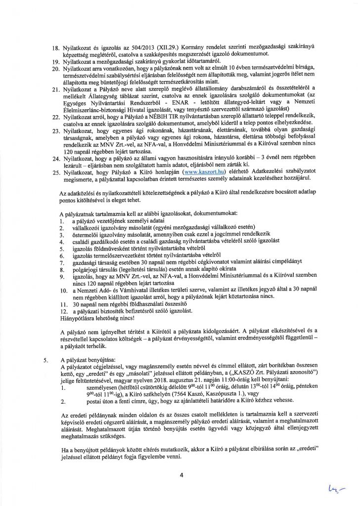KASZÓ ZRT. pályázati felhívása