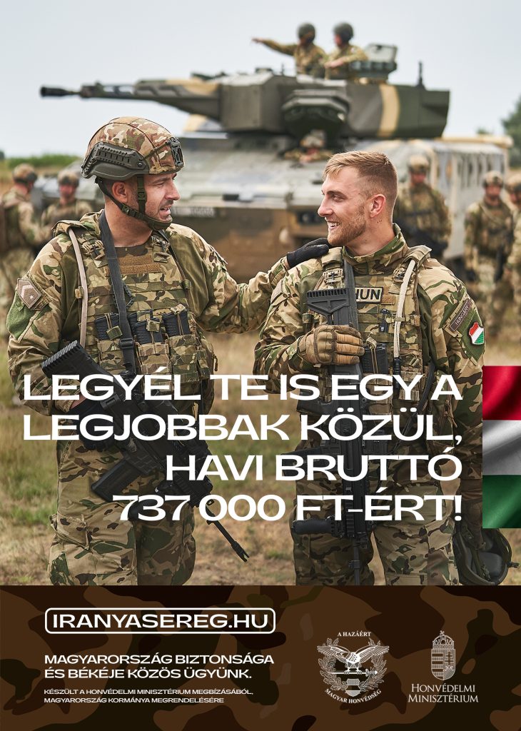 A világ egyik legmodernebb harcjárművének kezelésére most kiemelt illetményért jelentkezhetnek a fiatalok a Magyar Honvédség kötelékébe. Aki a Lynx-zászlóaljhoz csatlakozik, bruttó 737 ezer forintos fizetéssel kezdheti meg katonai pályáját Hódmezővásárhelyen.