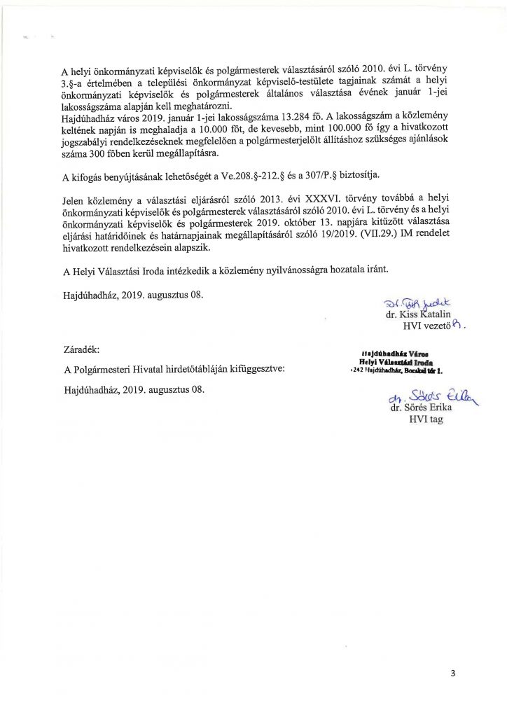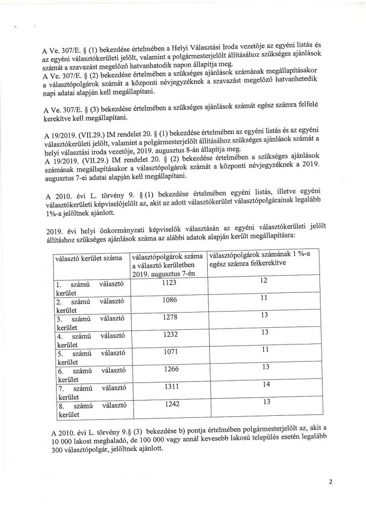 Közlemény – Az egyéni választókerületi jelölt, valamint a polgármesterjelölt állításához szükséges ajánlások számának megállapításáról