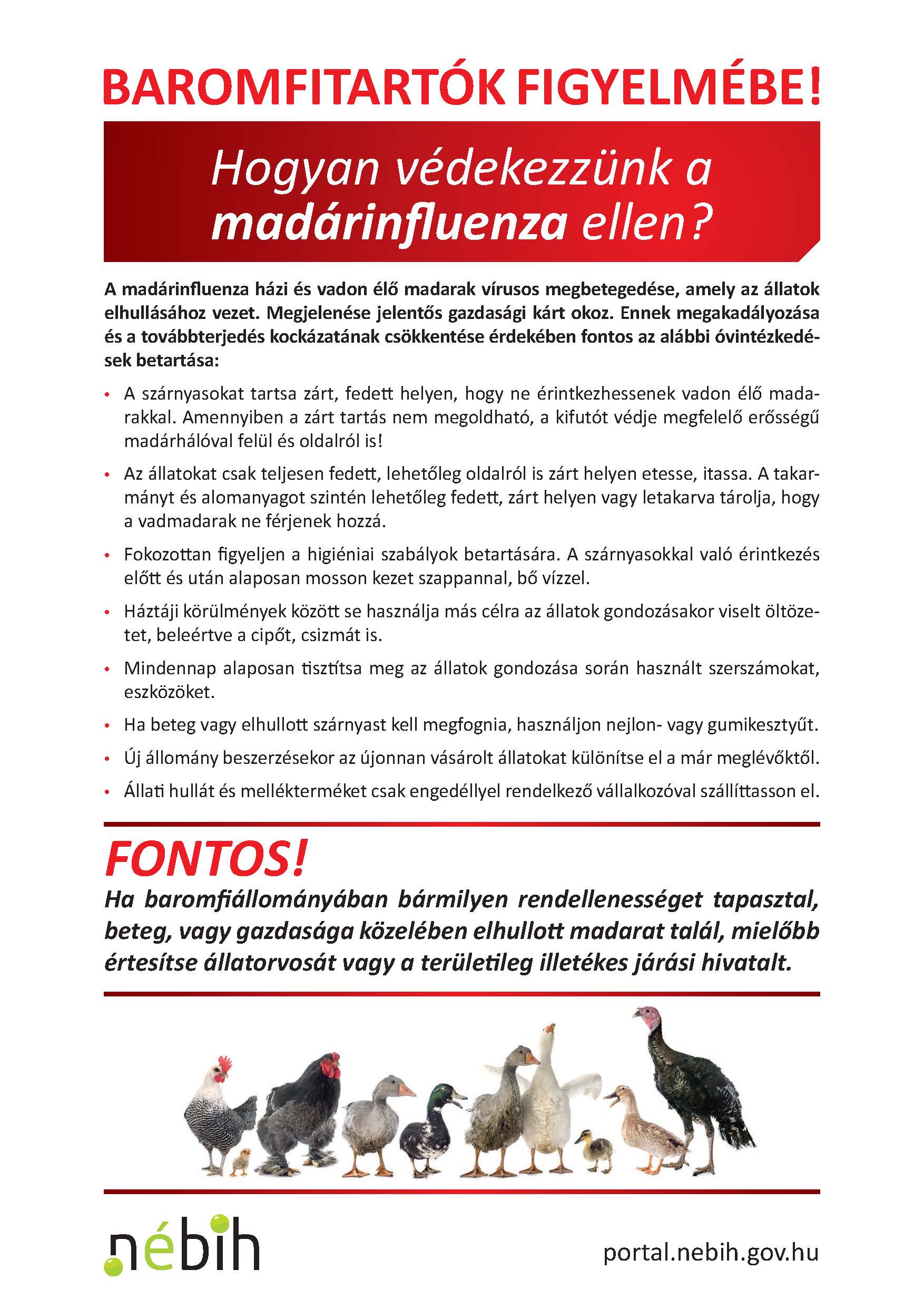 Madárinfluenza vírus elleni védekezéssel kapcsolatos lakossági tájékoztatás