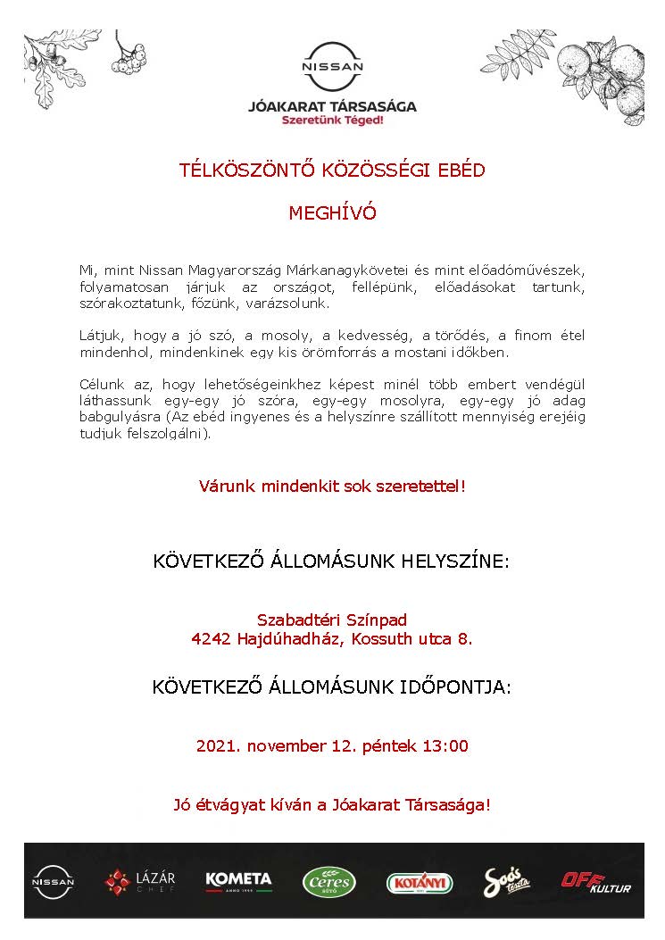 MEGHÍVÓ TÉLKÖSZÖNTŐ KÖZÖSSÉGI EBÉDRE