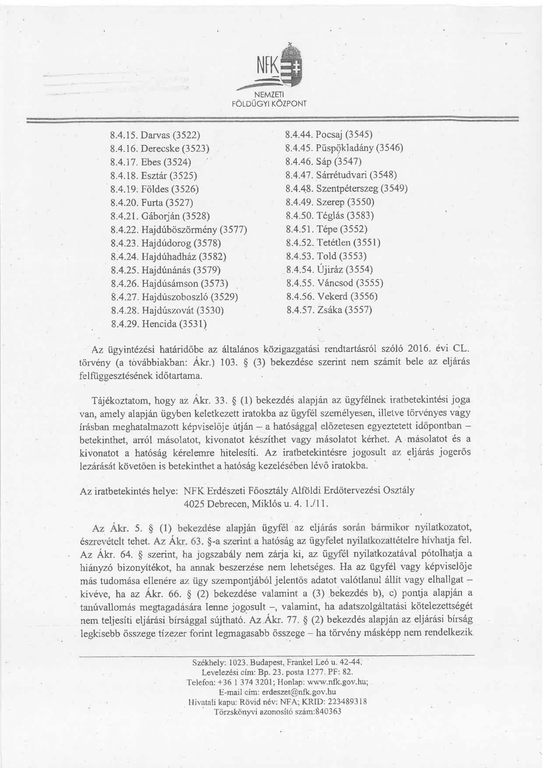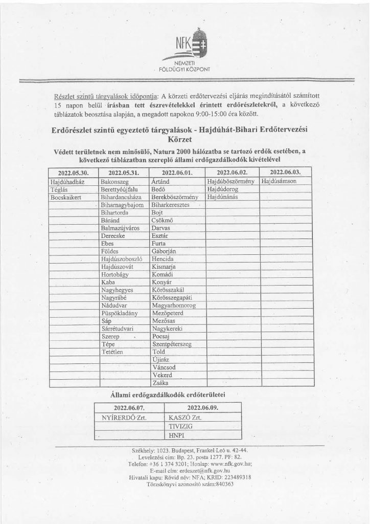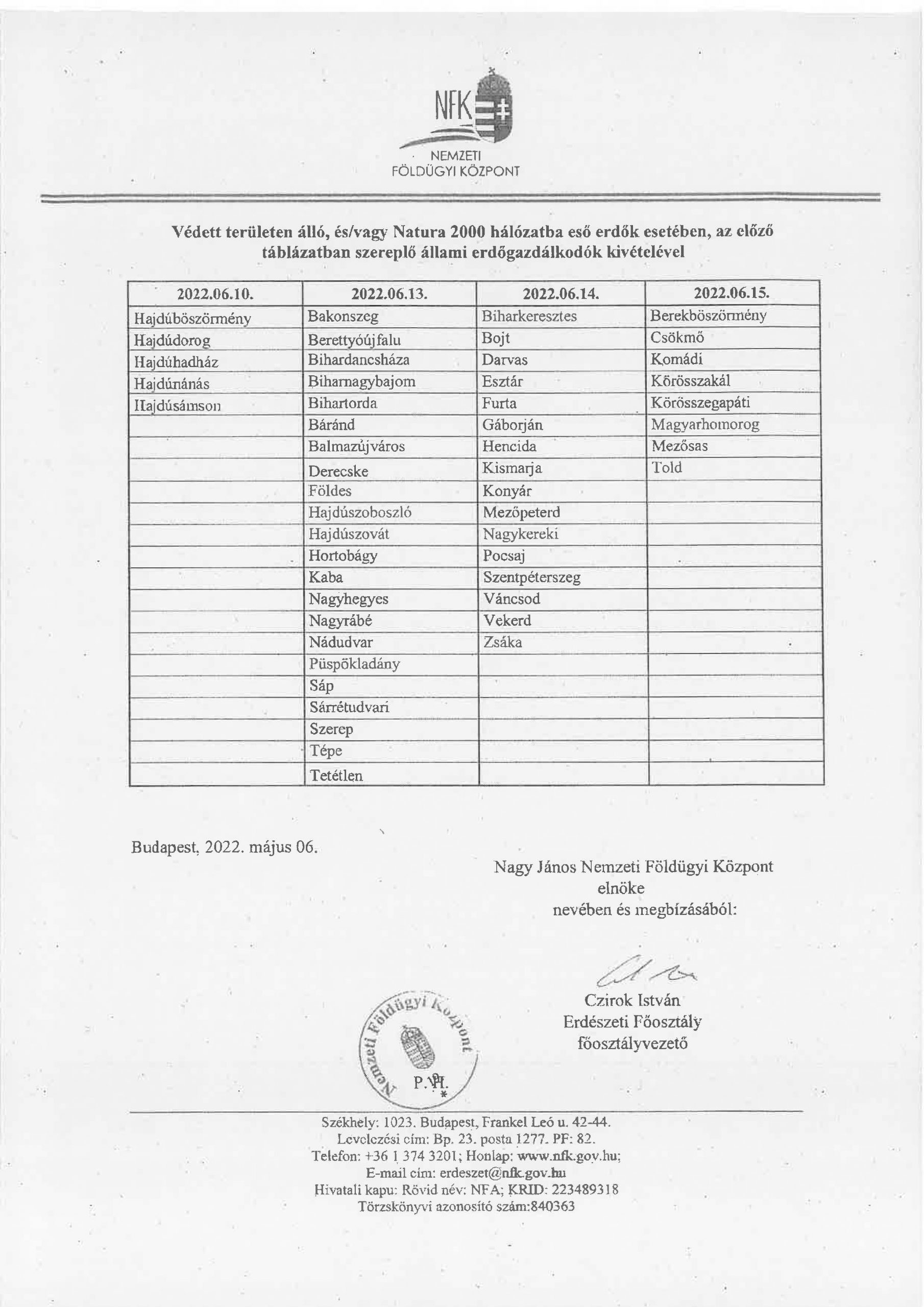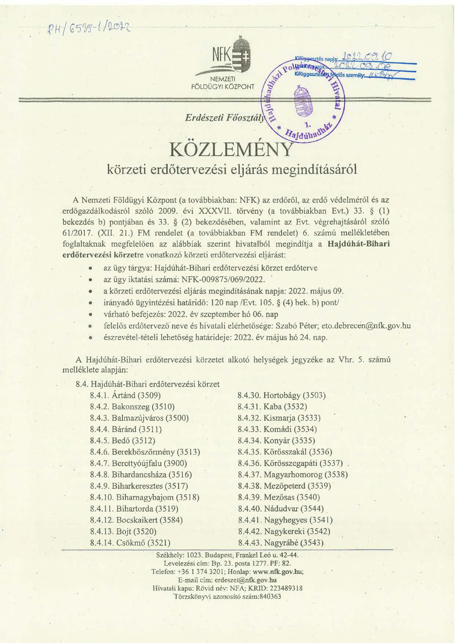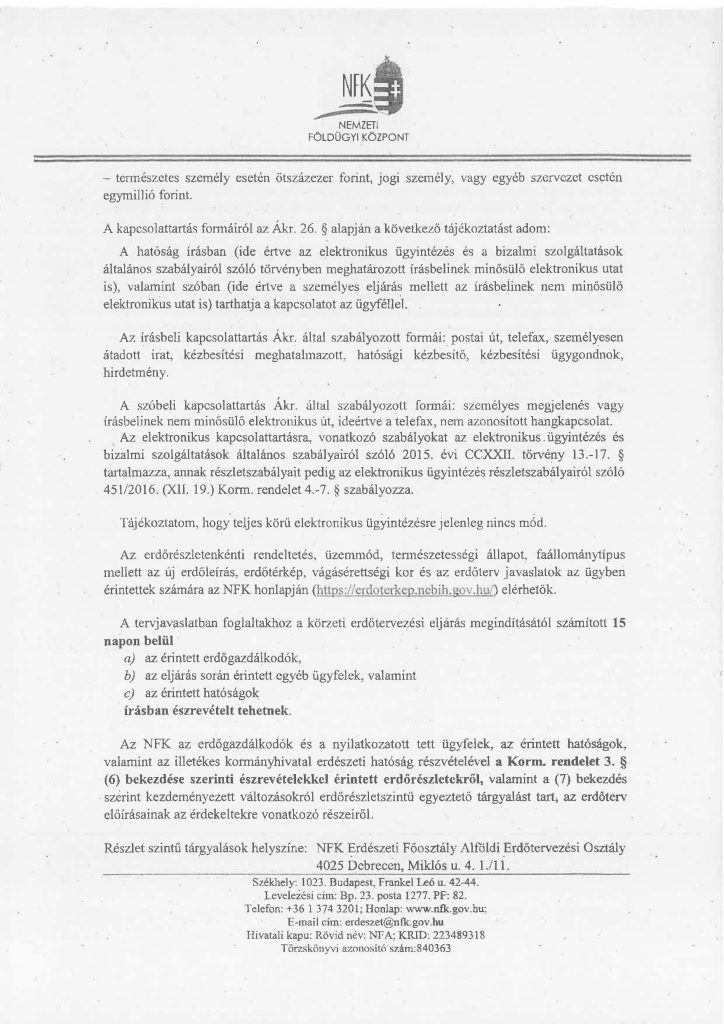 Nemzeti Földügyi Központ Erdészeti Főosztály közleménye