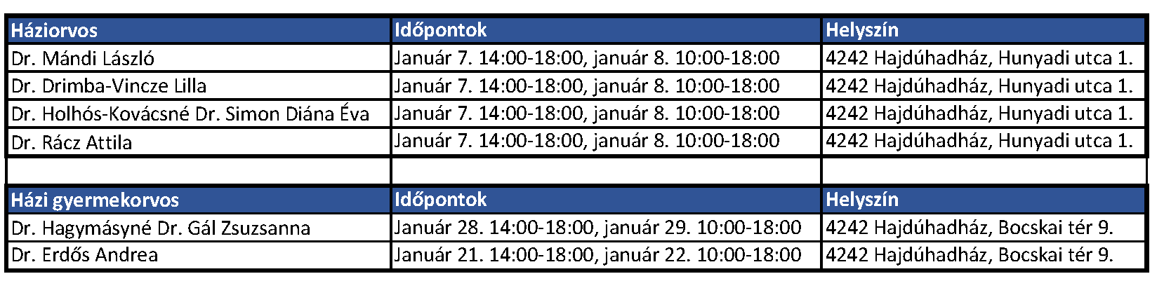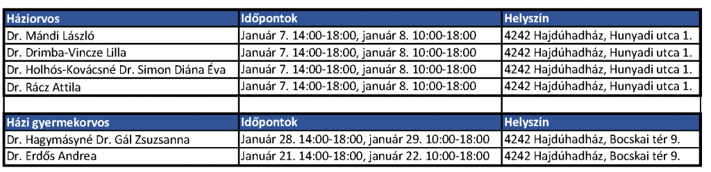 A magyar lakosság minél szélesebb körű átoltottsága érdekében Hajdúhadház Város Önkormányzata közigazgatási területén egészségügyi alapellátást végző háziorvosok, illetve házi gyermekorvosok oltási akciónapokat tartanak az alábbi időpontokban.