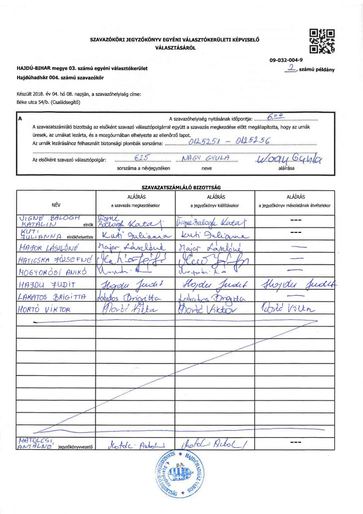 Országgyűlési képviselők választása – Jegyzőkönyvek 004. szk.