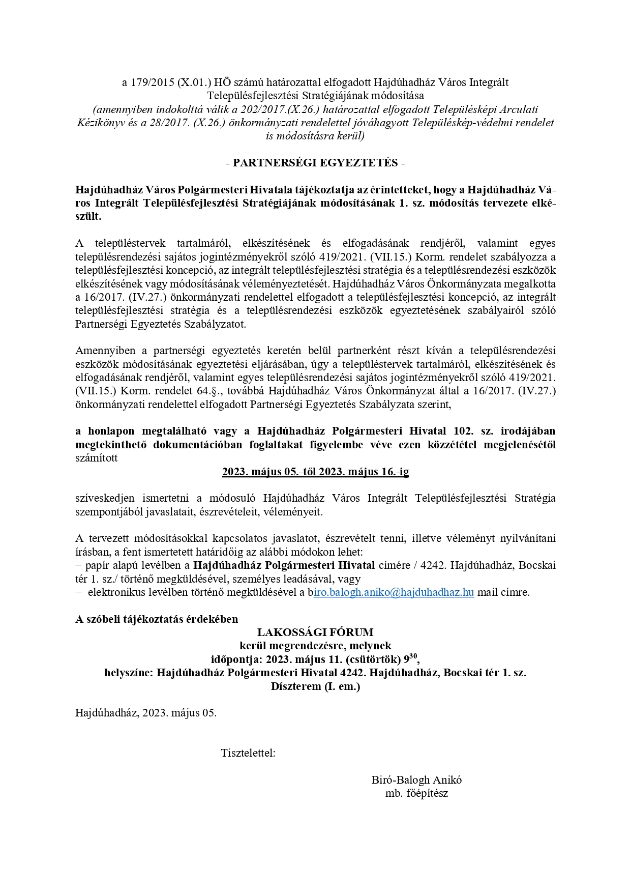 Integrált Településfejlesztési Stratégia 1. sz. módosított tervezete