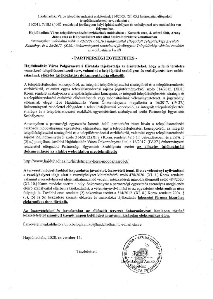 PARTNERSÉGI EGYEZTETÉS
