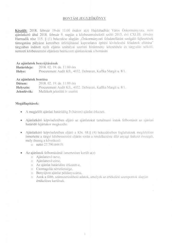 Ajánlattételre felkért gazdasági szereplők (2) Bontási jegyzőkönyv – Útfelújítás Ingyenes jogsegély szolgáltatás Meghívó