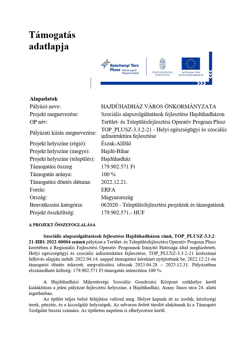 TOP_PLUSZ-3.3.2-21 – Helyi egészségügyi és szociális infrastruktúra fejlesztése