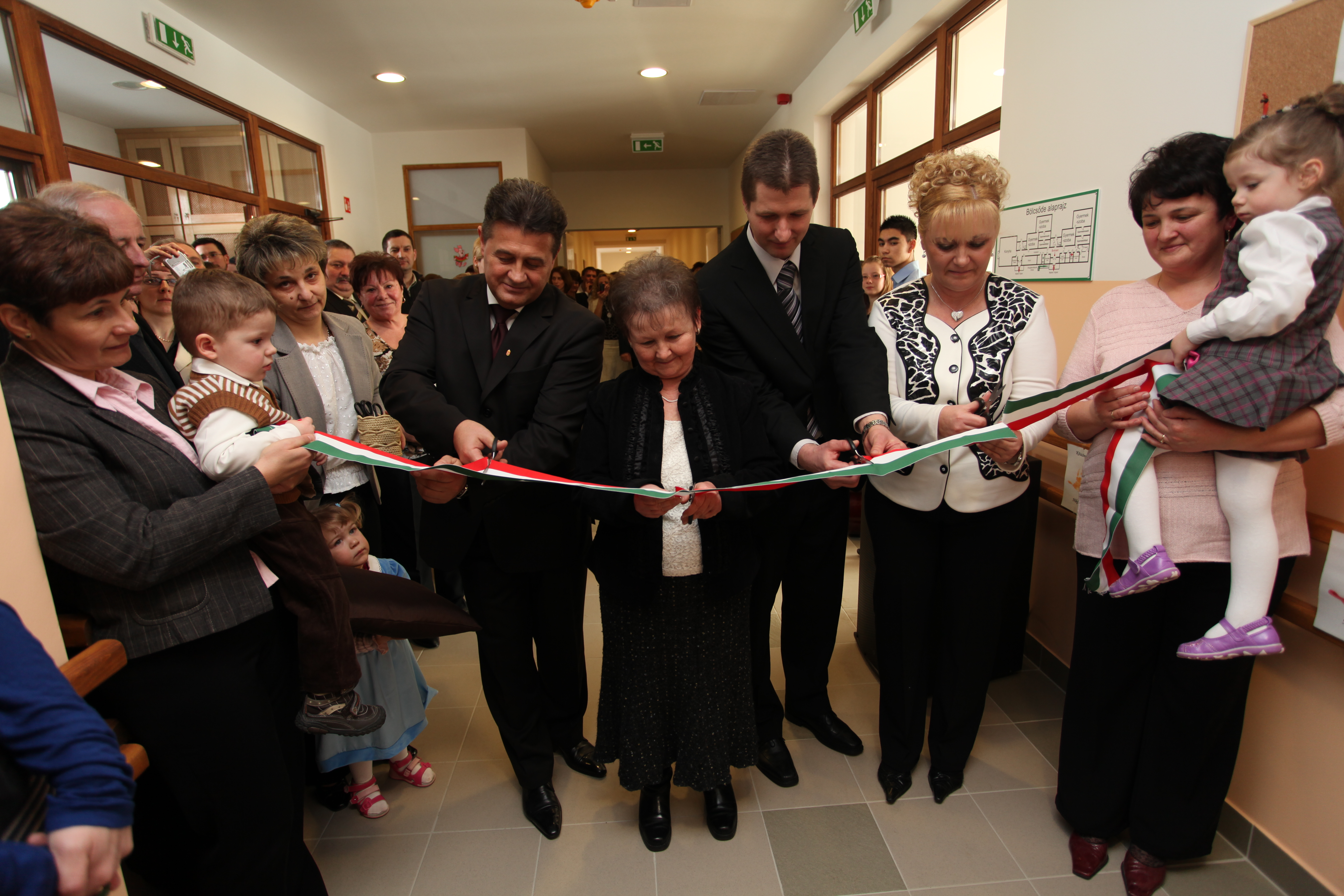 A nemzeti színű szalag ünnepélyes átvágásával Csáfordi Dénes polgármester, Tasó László országgyűlési képviselő, Nagy Éva szaktanácsadó és Kecsediné Molnár Anikó intézményvezető felavatta az új létesítményt.