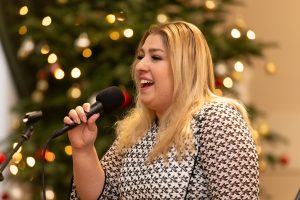 Ezután következett Dancs Annamari, a Budapesti Operettszínház vezető szólistájának karácsonyi koncertje. A gyerekek a művésznővel együtt énekelték Micimackó dalát a havazásról, átadva magukat a tél és az advent örömének, de a felnőttek is együtt éltek a műsorral.