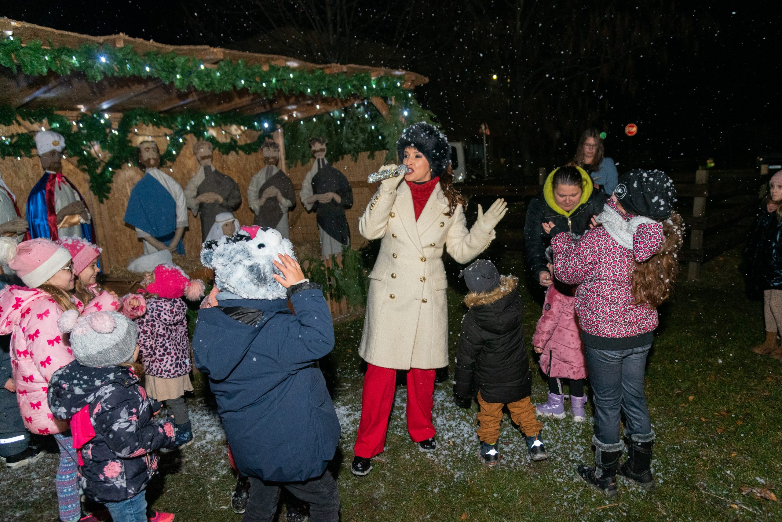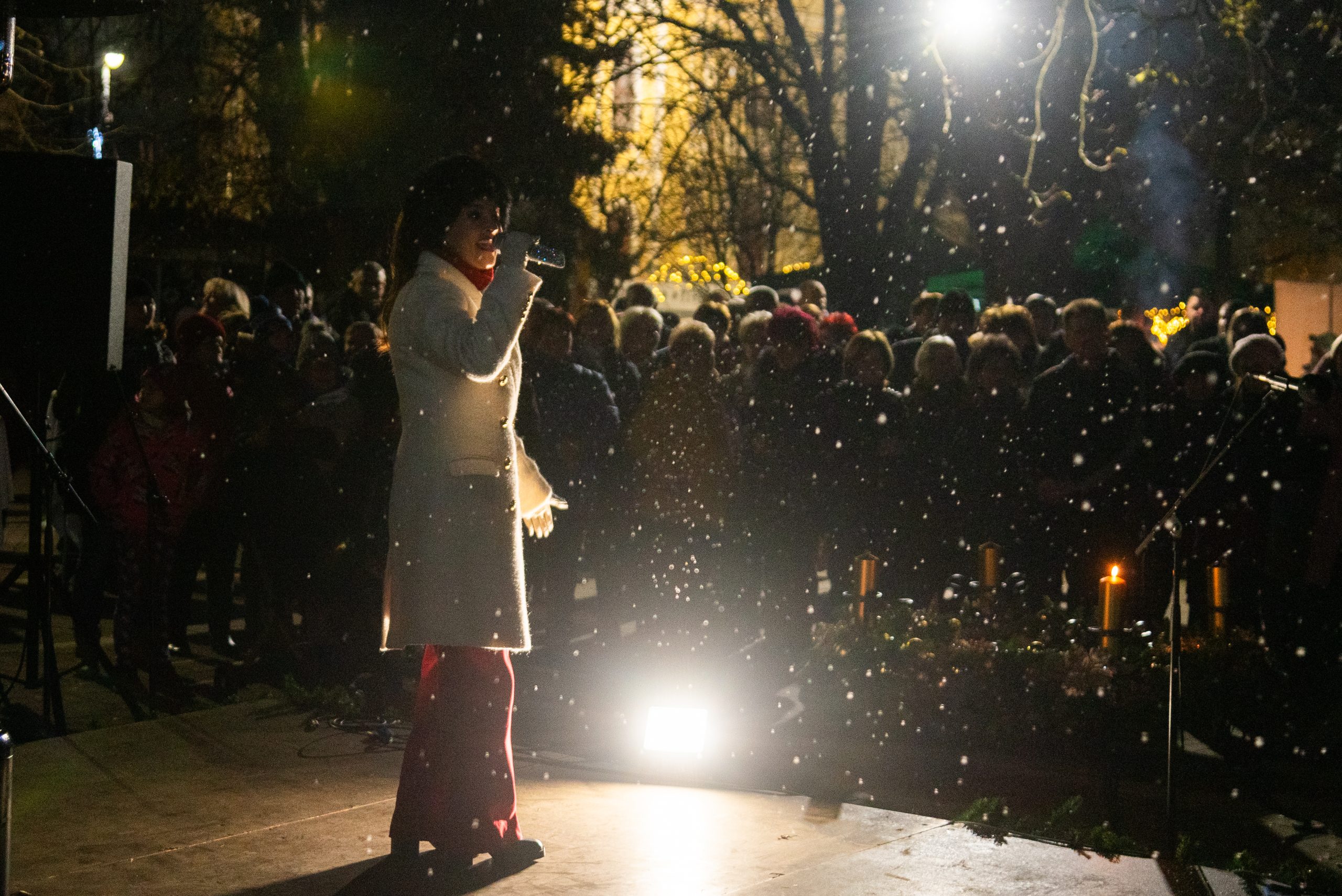 Ezután következett Dancs Annamari, a Budapesti Operettszínház vezető szólistájának karácsonyi koncertje. A gyerekek a művésznővel együtt énekelték Micimackó dalát a havazásról, átadva magukat a tél és az advent örömének, de a felnőttek is együtt éltek a műsorral.