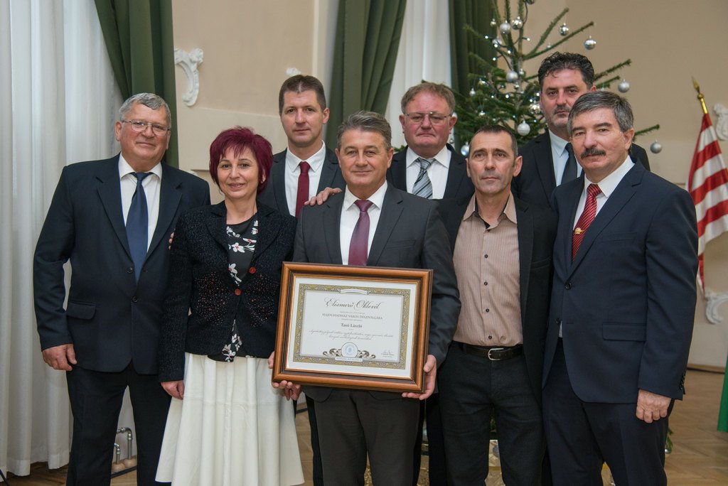Ünnepi testületi ülésen a legmagasabb, település szinten adható elismerés a „Hajdúhadház Város díszpolgára kitüntető cím”, melyet a város fejlesztése területén elévülhetetlen érdemeiért, a város támogatásáért, Tasó László, Hajdúhadház országgyűlési képviselője vehetett át.