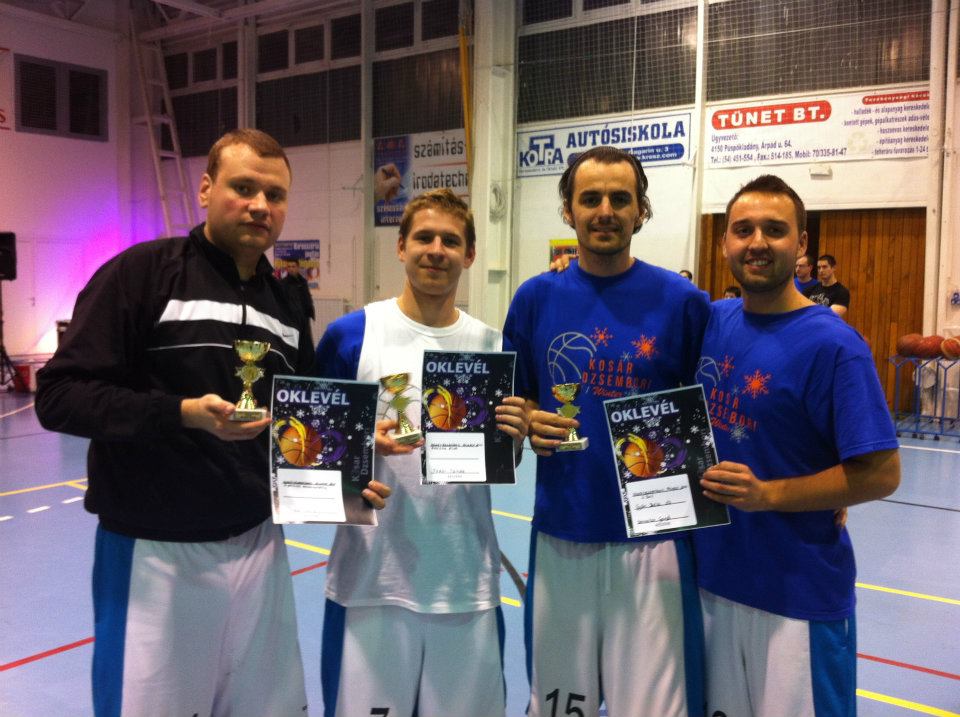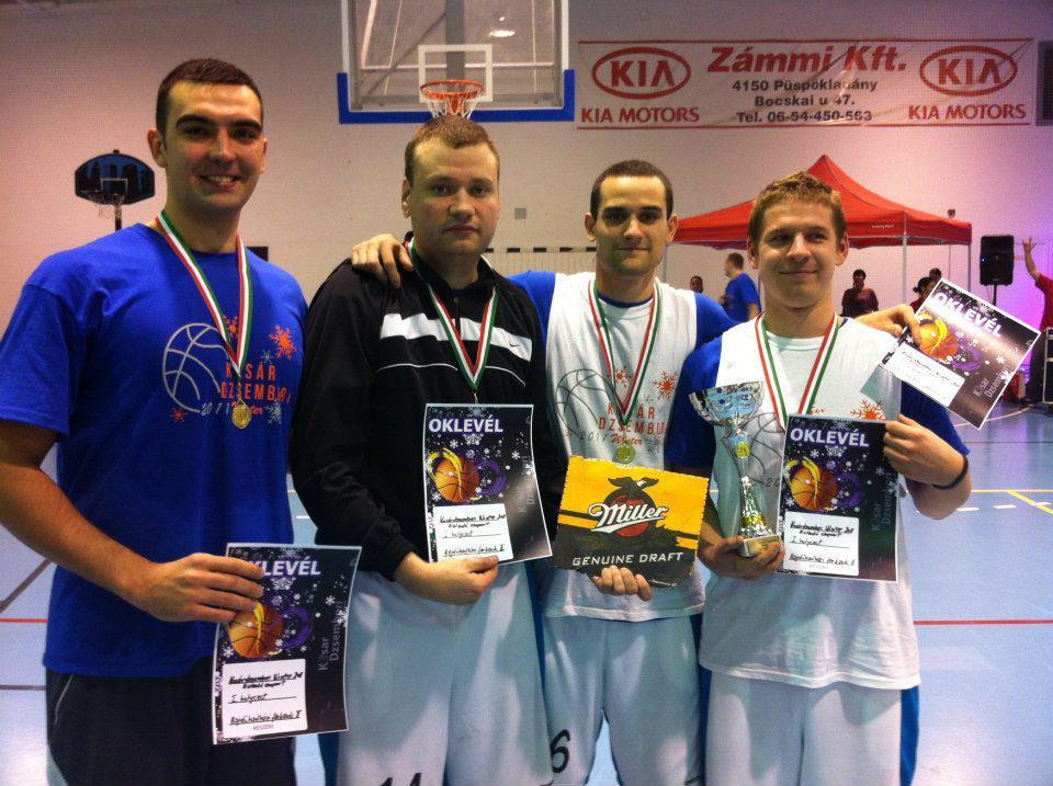 Azonban itt még nem ért véget az „aranyos” nap, mivel három dobóversennyel készültek a szervezők a jelentkezett csapatok játékosainak. Volt 3 pontos dobó verseny, 2 ball (két játékos, adott pontokat érő helyekről végez dobást 1 perc alatt és a két játékos által dobott összeg az eredmény) és Extreme shot (itt a fő cél az volt, hogy valamilyen extrém dobással próbálják elkápráztatni a zsűrit). Természetesen a Farkasok játékosai is úgy gondolták, hogy elindulnak minden versenyen, hogy minél nagyobb eséllyel pályázzanak arra, hogy a győztes személy hadházi legyen! Meg is lett a várt jó eredmény: a 2ball játékban Győri Béla és Demeter Gergő szinte új rekorddal diadalmaskodtak, ezzel elhódítva a győzelmet. Az Extreme Shot kategóriában próbálták a vicces és a bravúros feladatot is választani a kedvező közönségi bírálat kedvéért. A legtöbb pontot Fedor Tamás hozta el, egy lenyűgöző láb közötti átvétellel spékelt ziccer dobást mutatott be, így gyarapította a hajdúhadháziak által begyűjtött címeket. Már csak egyetlen egyéni versenyszám volt hátra, a 3 pontos dobó verseny döntője, ahol a tavalyi győztes is szerepelt. A döntő abból állt, hogy 5 helyről négy dobást lehetett megkísérelniük a játékosoknak, amiben Ilyés Imre 16 pontot szerzett így ezt a címet is sikerült Hajdúhadház számára elhódítani.